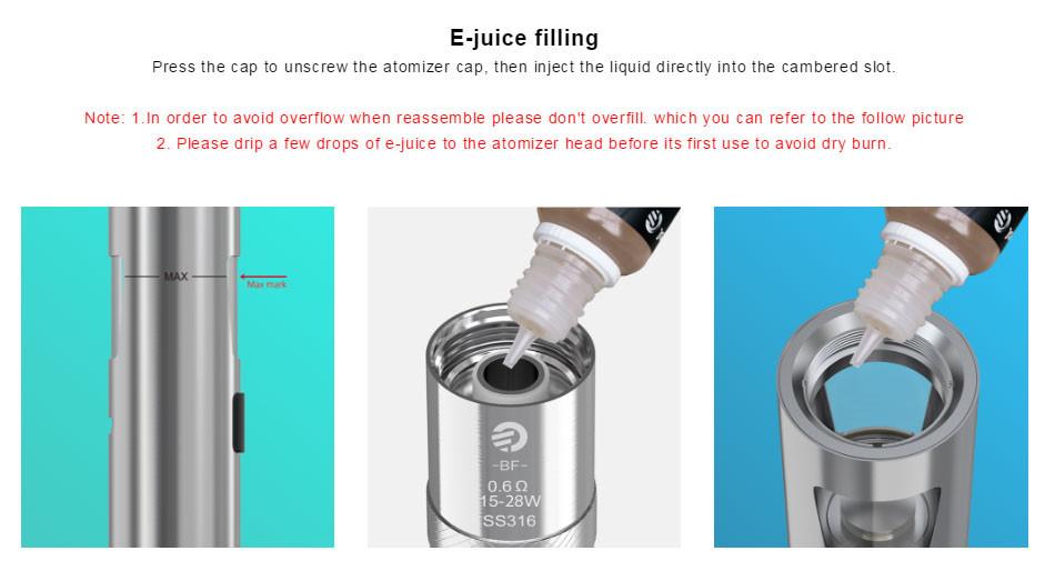 Warning: This kit comes standard with subohm coils which are designed to give more vapor output. Newer and unfamiliar users may find subohm vaping harsh or overwhelming when using stronger e-liquids. You may hear a popping or crackling sound when heat is applied to e-liquid, this is normal and juice may jump into your mouthpiece (drip tip) which can require regular cleaning.