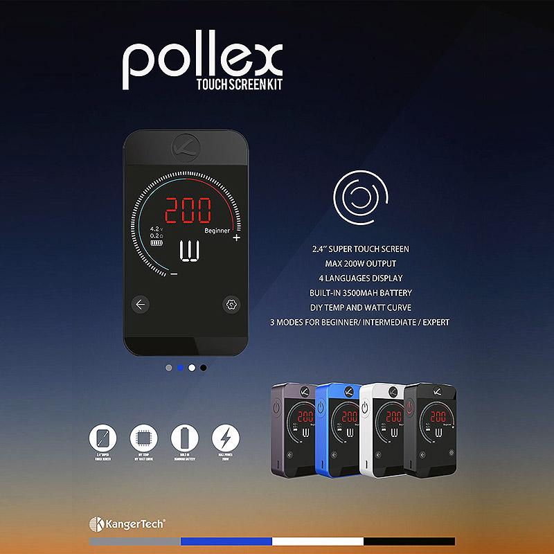 The Kanger Pollex Box Mod is a 3500mAh mod, watting up to 200W. It had a 2.4-inch touch screen, supporting various levels of vapers. It has the ability to customize TC settings, as well.