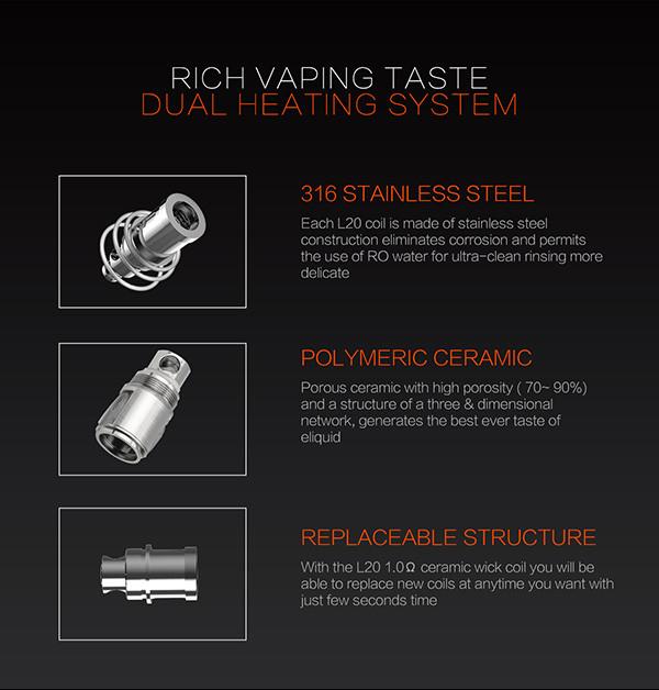 Replacement atomizer coils for L20 atomizer tank by GS / LSS. These dual coil ceramic wick coils are designed for maximum flavor and longevity.