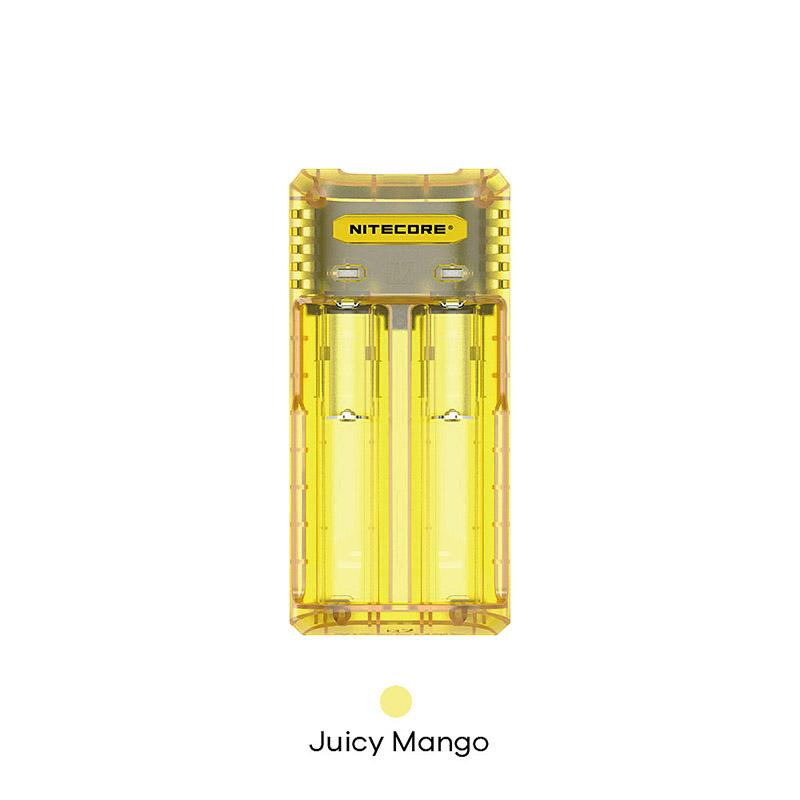 The Nitecore Q2 is a nifty charger, available in 4 colors. With an output current up to 2000mAh in a single slot. The Q2 charges two batteries independently.