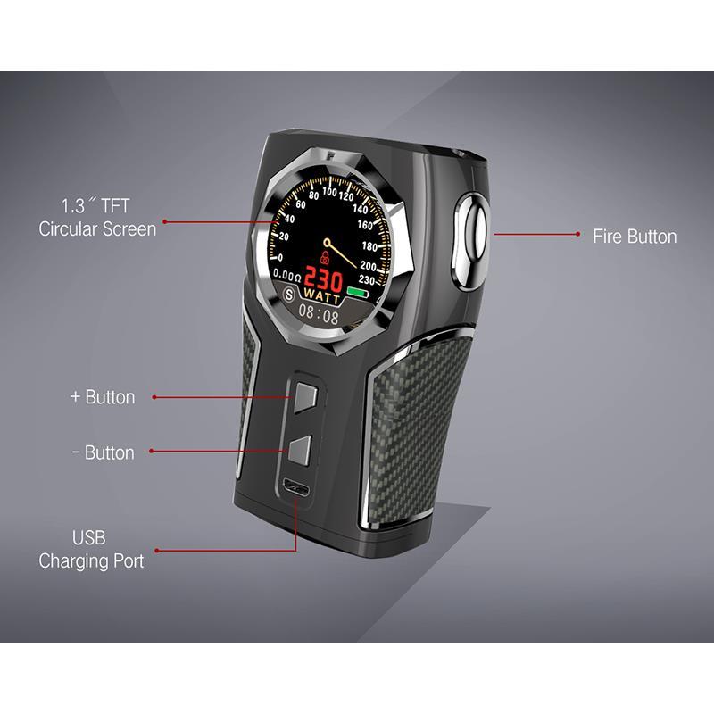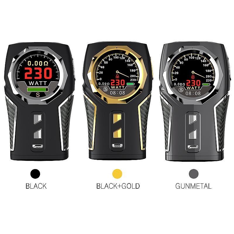 The Sigelei TOP1 230W TC Box Mod comes at you with a different look. This device has an 1.3inch circular HD display screen, and on the back side is a high quality, decorative stainless steel shield. Supporting VW & TC modes, powered by two 18650 batteries (not included) and outputs up to 230 watts. In addition, this mod supports three different power modes, including: strong output, regular output, and soft output. Allowing for extreme optimization for your personal vape experience.