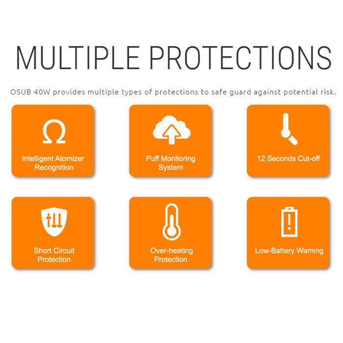 The Smok OSUB 40W TC Kit comes with an OSUB 40W TC Mod and Helmet Mini tank atomizer. It's compact size is small enough to comfortably fit in your pocket. The OSUB 40W mod has a built-in 1350mAh battery, variable voltage, variable wattage, and temperature control functions. This kit includes a Helmet Mini Tank with 2.0ml liquid capacity and V shape airflow channel giving you a unique vaping experience.