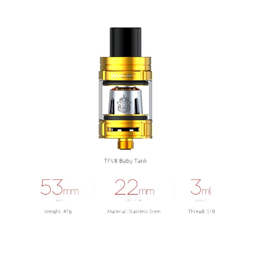 - Includes (2) V8 Baby-M2 Core 0.25ohm Dual Coil Atomizer Head