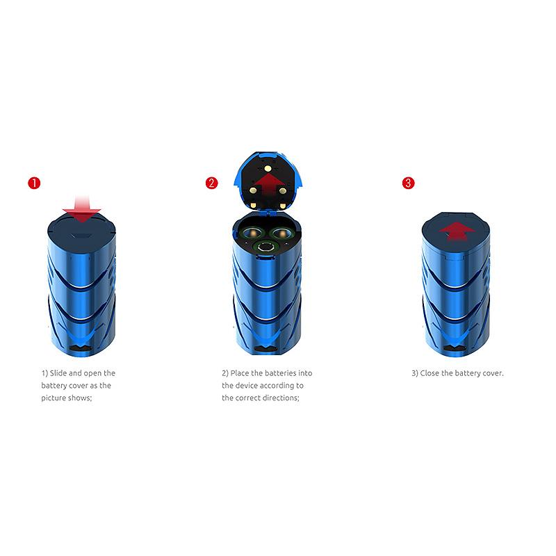 The Tpriv 3 mod is powered by (3) 18650 batteries (not included) which are replaced with ease through the hinged door on the bottom of the mod. So go ahead and chuck huge clouds with piece of mind AND killer style!