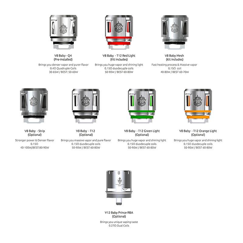 How special and elegant is a baby panda bear cub? The mother has worked hard to create that cub, and works even harder, ensuring that cub is ready to roam free. The TFV12 Baby Prince Tank is just as special. Having the ability to fit 4.5ml into its baby bubble shaped glass tank tube. This tank includes three game changing coils; the V8 Baby-Q4, V8 Baby-T12 red light coil and V8 Baby mesh coil.