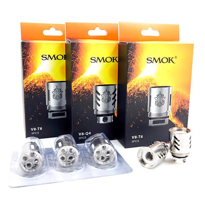 Replacement coils for the SMOK TFV8 Cloud Beast Tank for extremely high power mods. The Cloud Beast Tank has 4 different Turbo Engines coil structures and the V8-T8 has an 8 (Octuple) vertical coil design with the capacity to fire up to 260W.