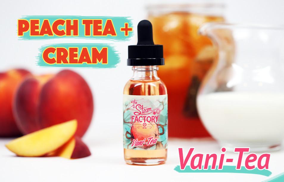 Steam Factory's Vani-Tea e-juice is a creamy peach-like infused tea flavored e-liquid.