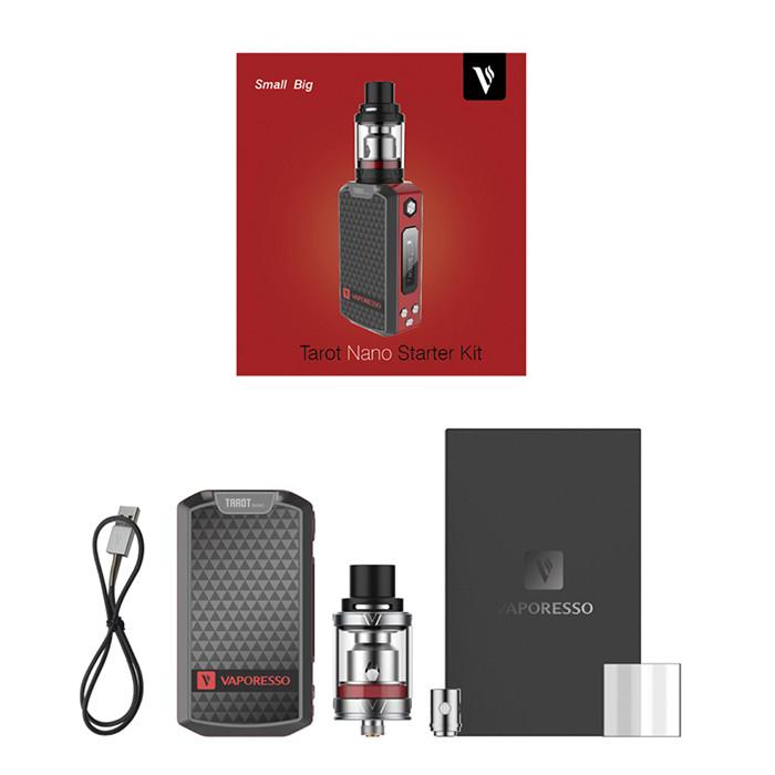- 1x Vaporesso Tarot Nano 80W Box Mod (2500mah built-in battery)